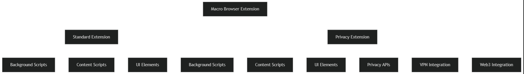 Macro discourages extensions (they expand attack surface), but supports limited extension API for essential tools.