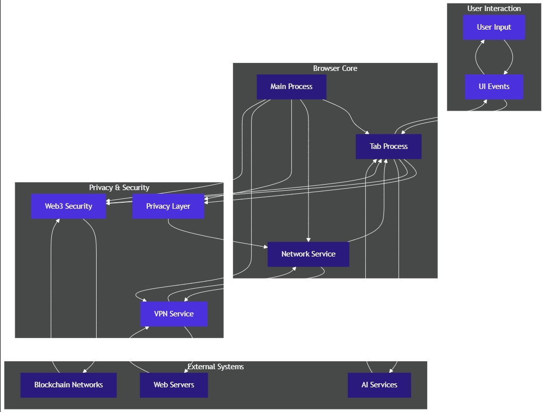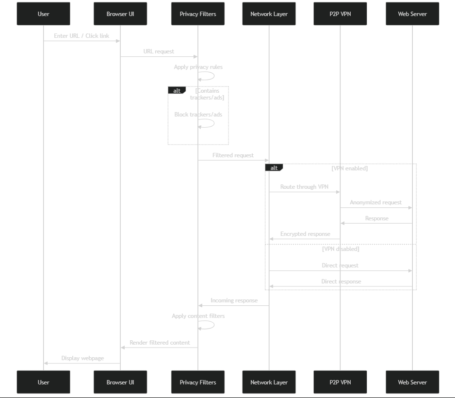 User action → Privacy checks → Policy enforcement → Execution